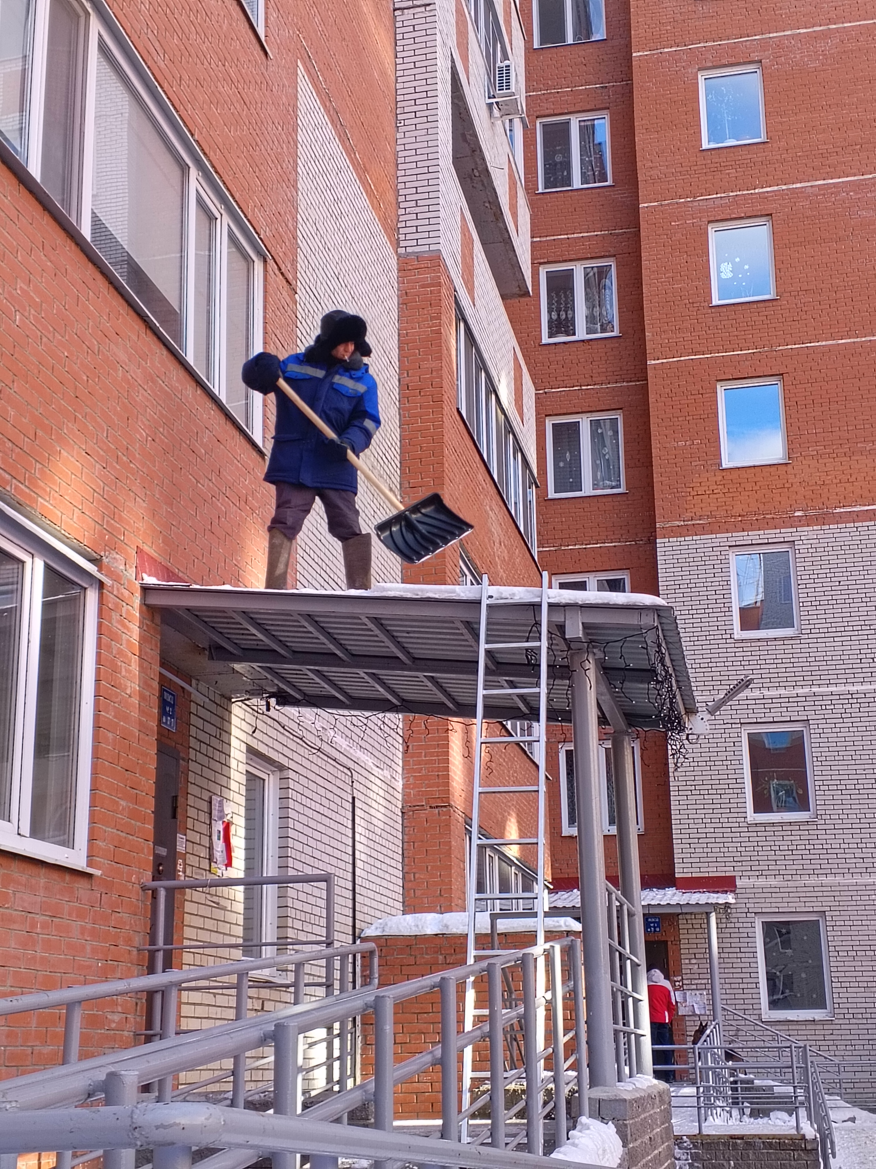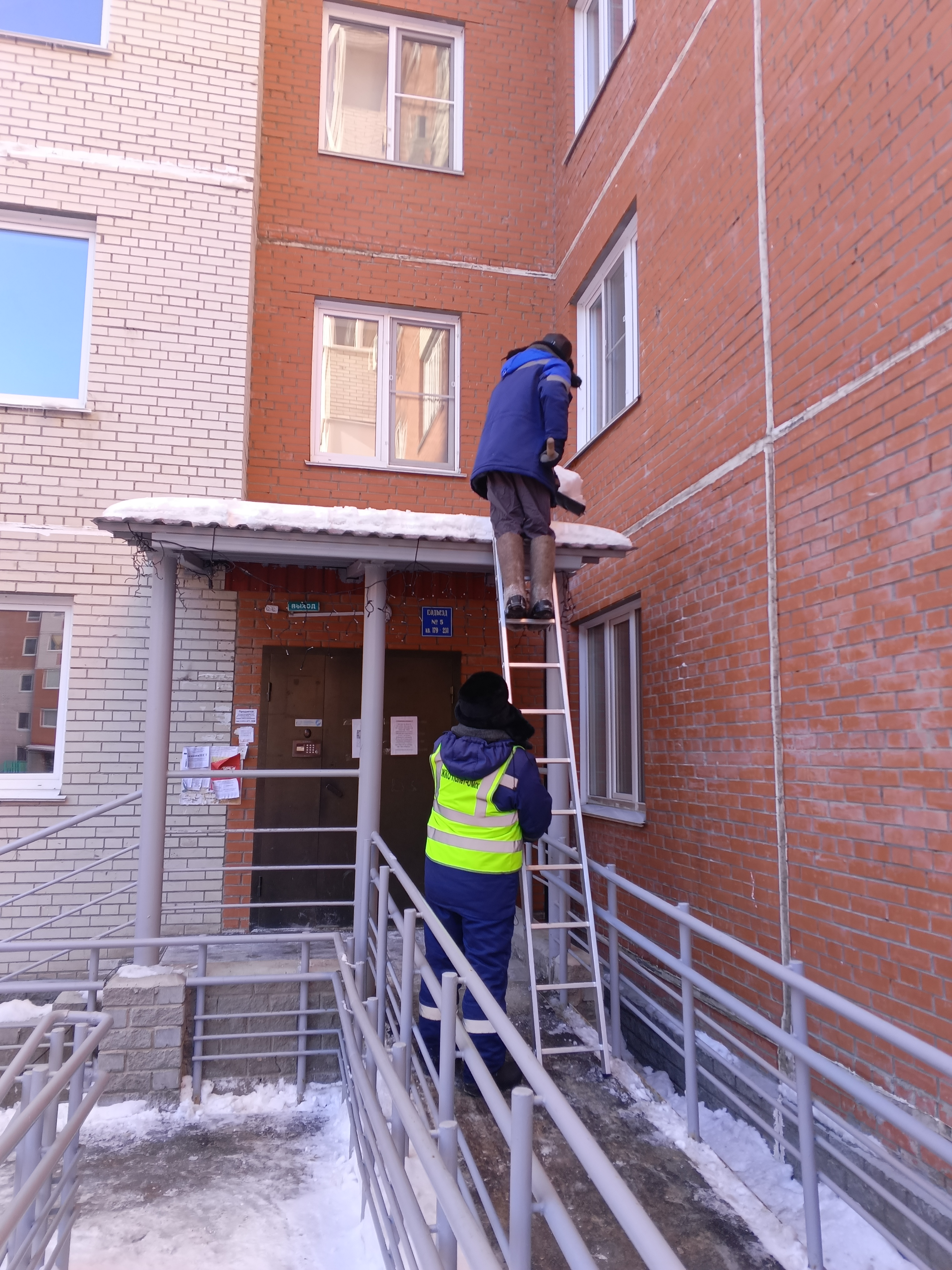 1-й Красной Звезды 79 и 81. Выполнена очистка козырьков от снега