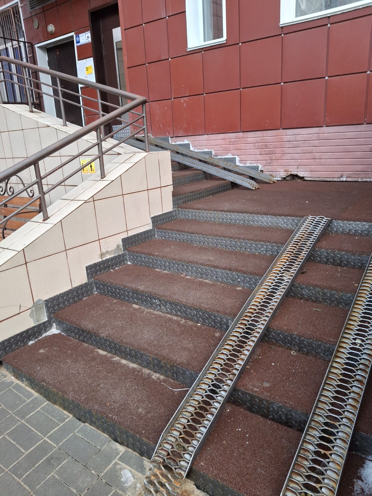 70 лет Октября 13 к 3. Замена резинового покрытия на крыльцах в пяти подъездах